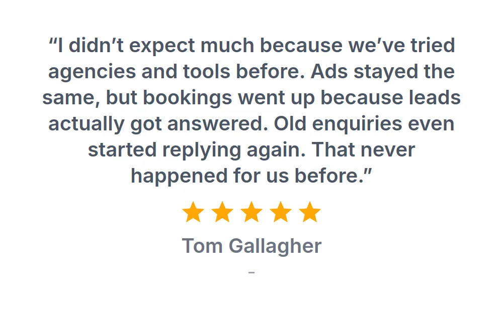 "We started getting more enquiries, more follow-ups, and more bookings. The system paid for itself pretty quickly."